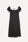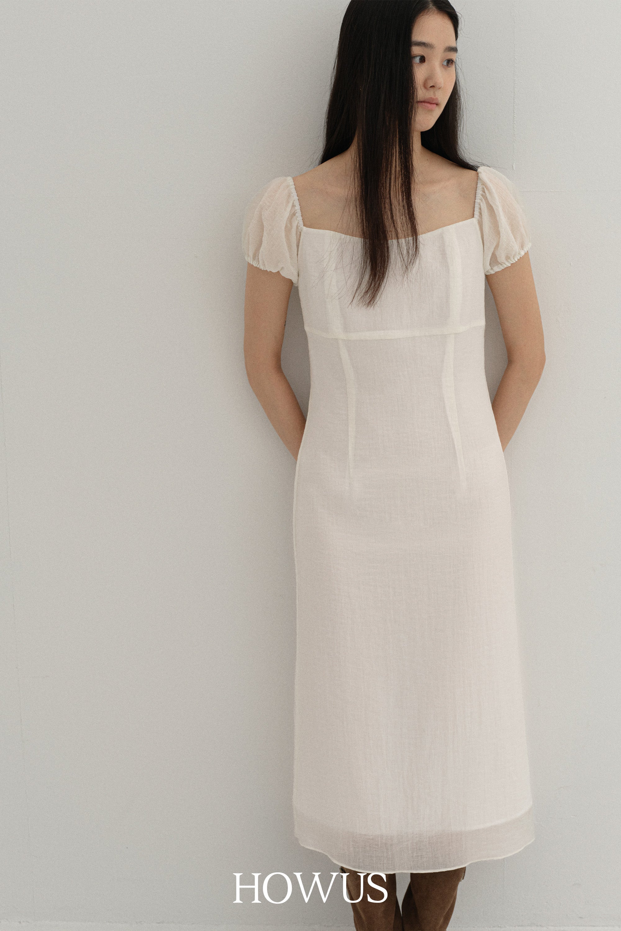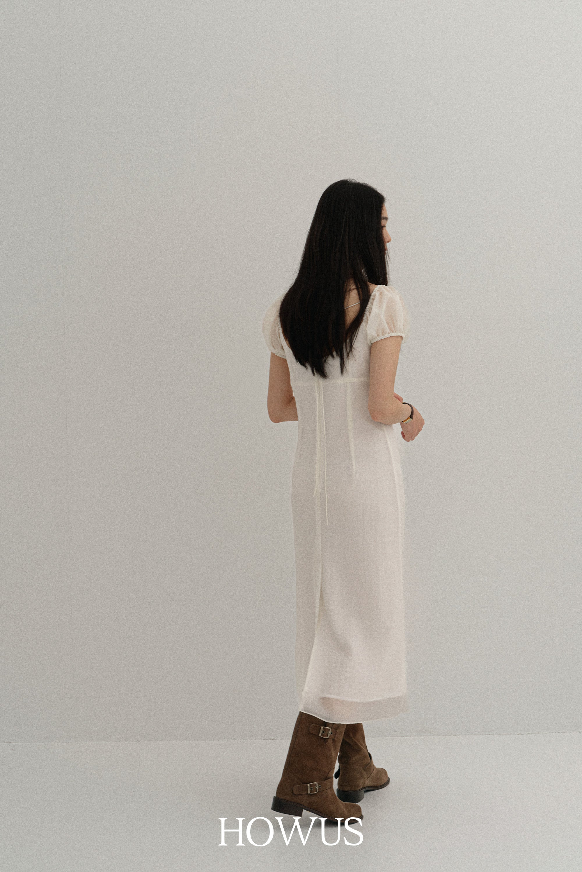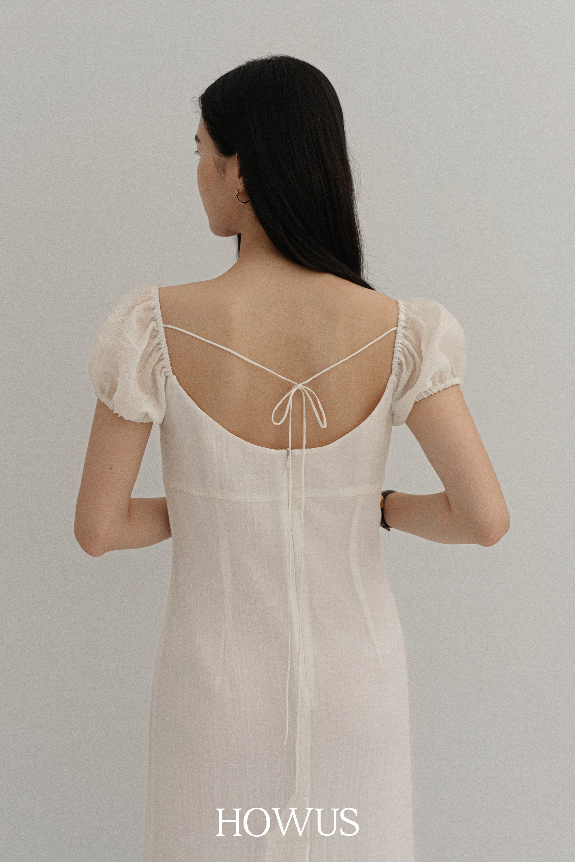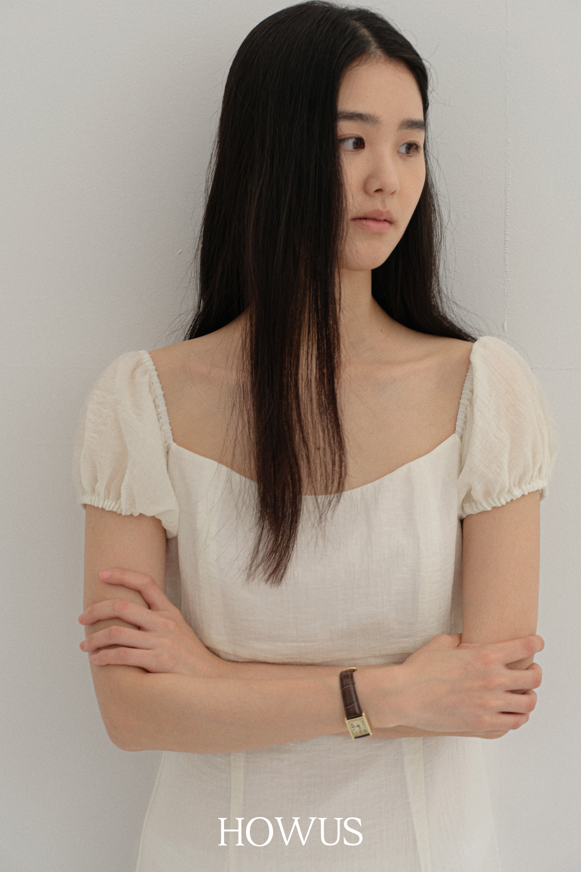 순수하고 사랑스러운 매력을 가지면서도, 차분한 화이트와 블랙 컬러로 제작되어 매니쉬한 무드까지 전달해주는 디자인입니다. 러블리함이 돋보이는 백 라인의 스트랩 디테일이 소매 부분을 잡아주어 안정감 있는 착용이 가능하며, 백 슬릿 디테일로 편안한 활동이 가능하도록 섬세한 디테일에 신경을 쓴 제품입니다. 과하지 않은 퍼프 소매가 얼굴 라인을 작아 보이게 해주며, 여성스러움을 극대화시켜줍니다. 답답하지 않은 넥 라인이 몽환적인 분위기를 연출해주고, 은은한 비침이 매력적입니다. 비침 방지 원단을 덧대어 레이어드 느낌을 더해주었으며, 적당히 핏되는 허리 쉐입으로 우아한 무드를 자아내어 특별한 날의 드레스로 착용하기 좋습니다.