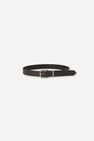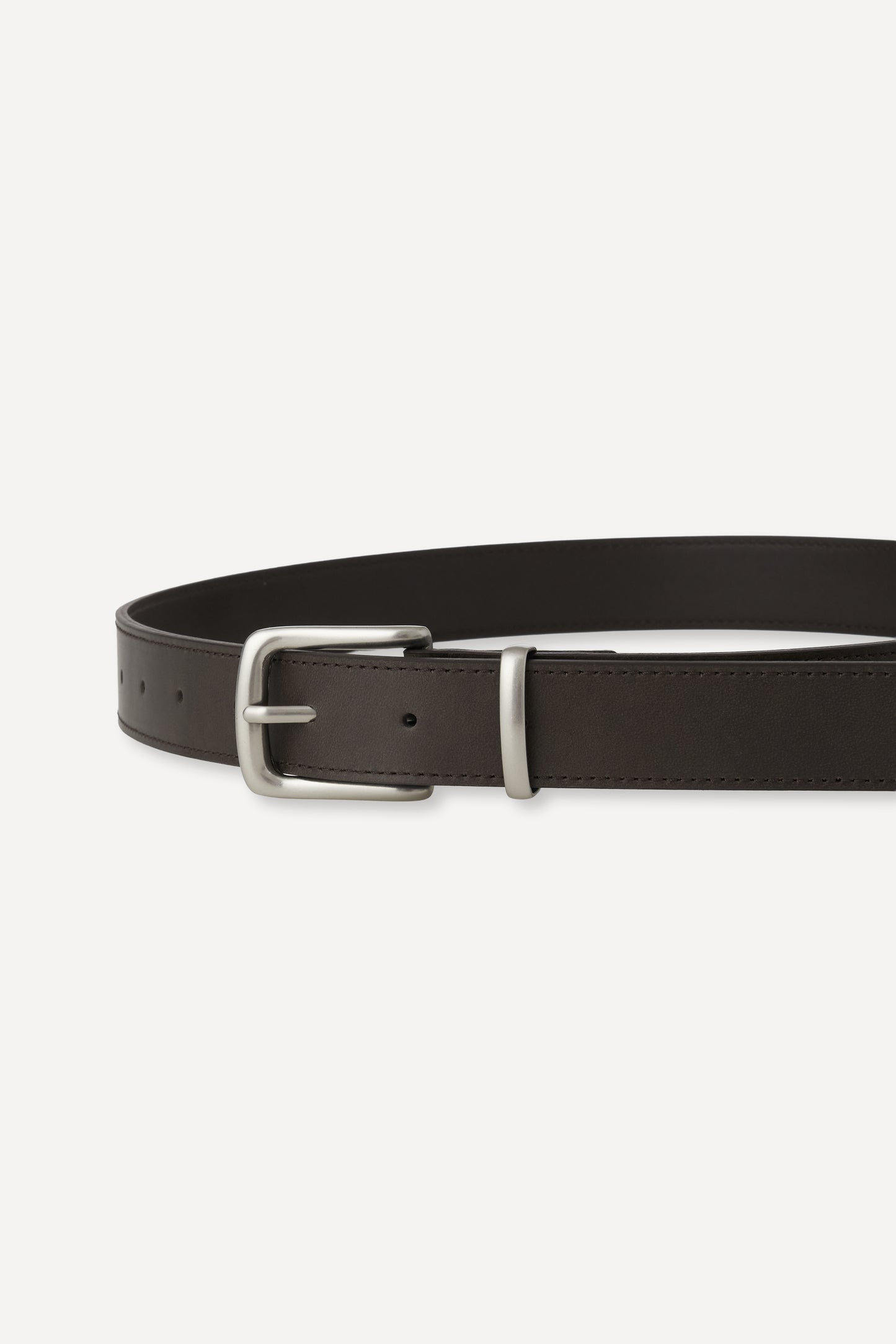 매끈한 표면과 단단한 밀도의 소가죽 텍스처는 손끝에 전해지는 견고함을 느끼게 하며 무광 사각 버클은 절제된 멋을 더해 전체적인 무드에 균형감을 더해줍니다. 군더더기 없이 단정하게 떨어지는 실루엣은 다양한 팬츠 스타일에 자연스럽게 녹아들고 일정한 간격의 홀 디테일은 체형에 맞는 편안한 착용감을 제공합니다. 벨트 팁은 부드러운 곡선으로 마감되어 견고하면서도 부드러운 인상을 남기며 섬세한 스티치 라인은 실용적인 내구성과 함께 은은한 장식을 완성합니다.