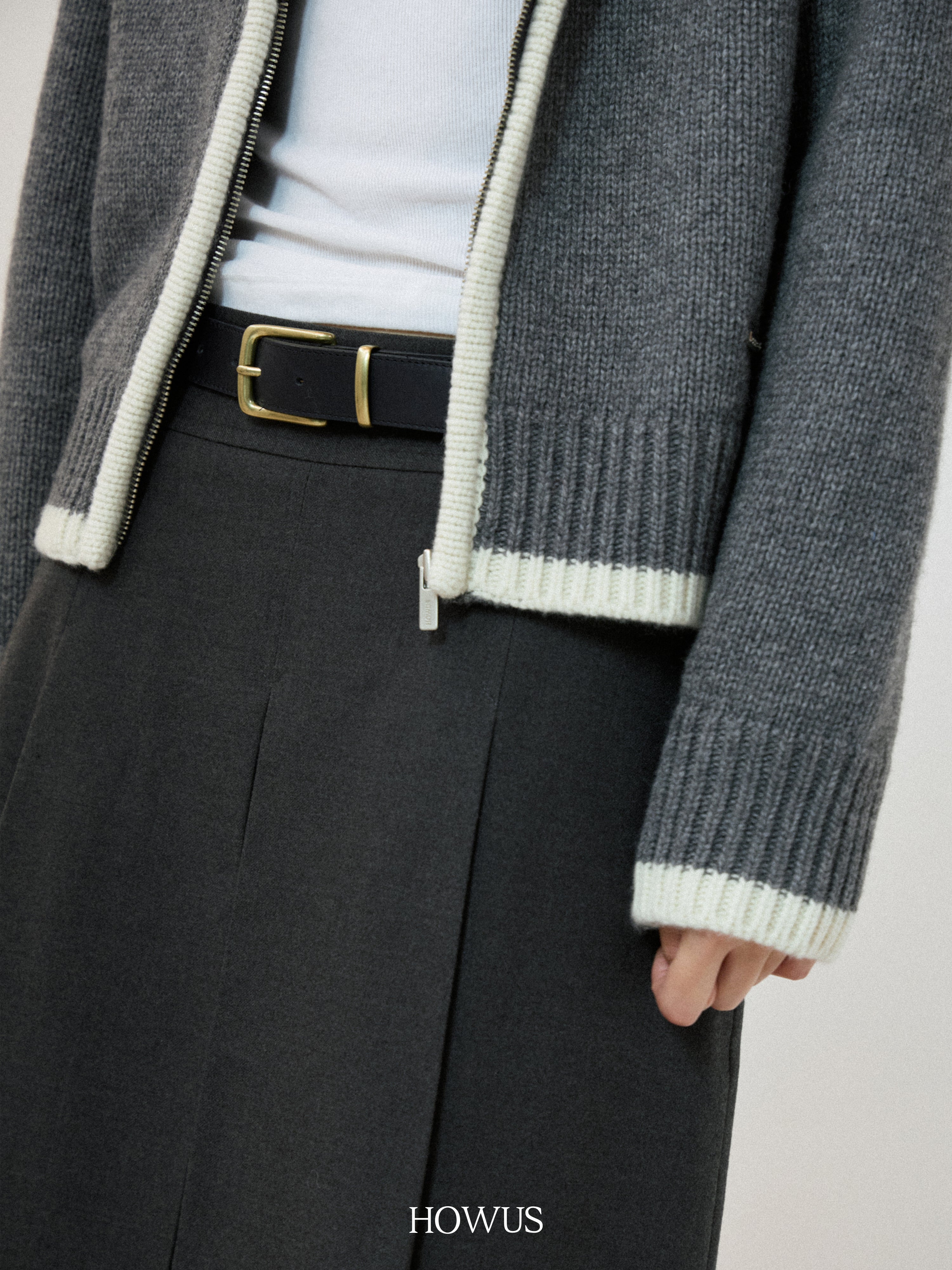 울 혼방 소재로 따뜻하면서도 부드러운 착용감을 제공하며, 무릎 아래로 떨어지는 미디 기장이 깔끔한 비율을 완성합니다. 스트레이트하게 떨어지는 여유 있는 실루엣이 단정하면서도 편안함을 선사하며 앞면의 인버티드 플리츠 디테일은 움직임을 자연스럽게 도와주면서 포인트가 되어줍니다. 베이직한 허리 밴드와 벨트 루프는 다양한 스타일링에 유연하게 어우러져 활용도를 높여줍니다. 포멀함과 캐주얼함을 모두 갖춘 미니멀 디자인으로, 데일리는 물론 격식 있는 자리에도 잘 어울립니다.