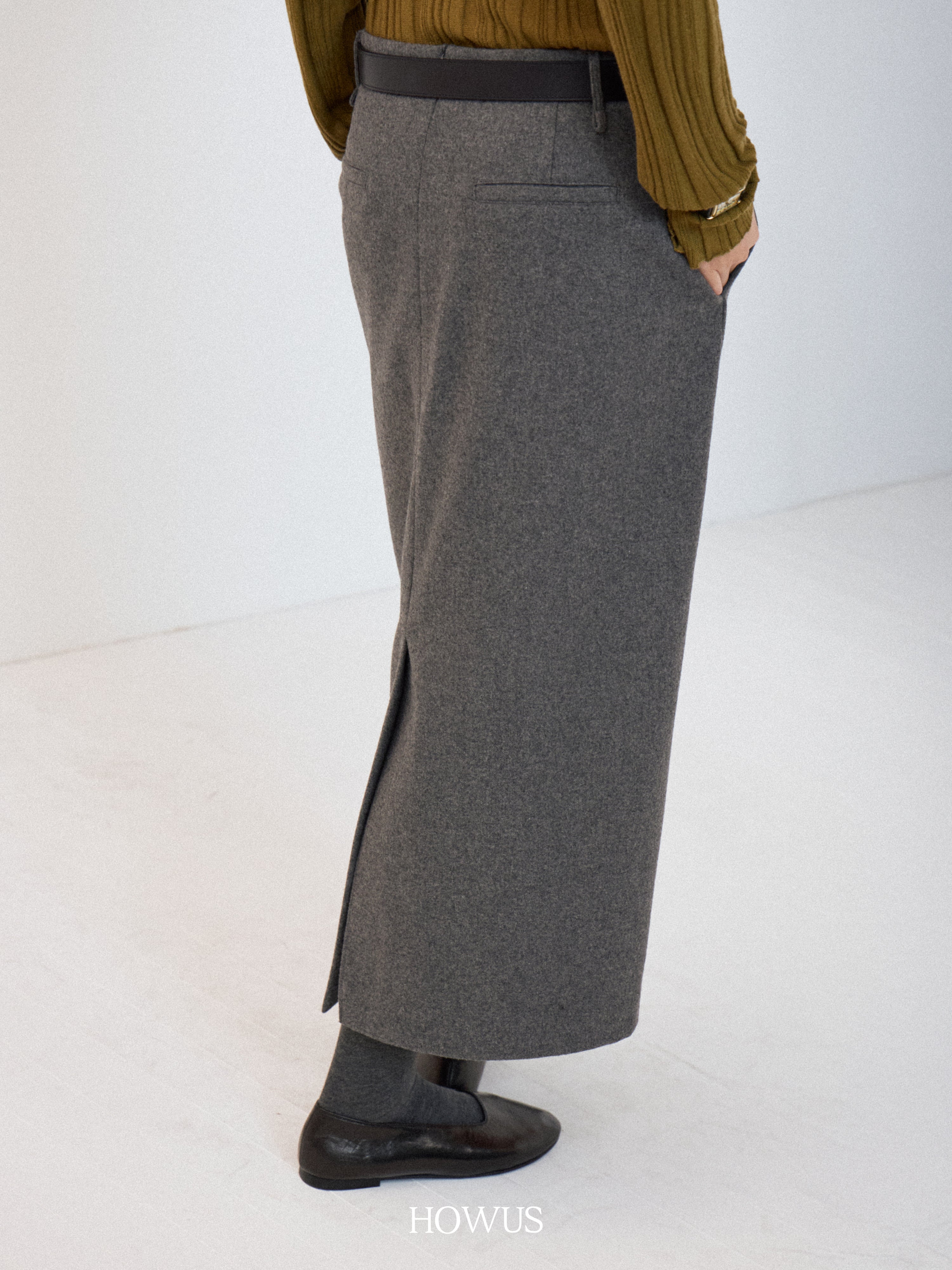 깔끔하게 떨어지는 실루엣과 단정한 무드를 담아낸 LINE SLIT SKIRT입니다.