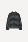 규칙적인 스트라이프 패턴이 균형감 있게 흐르며 클래식하면서도 캐주얼한 분위기를 선사하고, 대비되는 카라와 로고 자수 디테일이 절제된 포인트로 세련된 감각을 더합니다. 3버튼 플라켓으로 완성된 폴로 셔츠 안정감을 주며 긴 소매와 손목 립마감은 편안하면서도 단정한 실루엣을 유지해 줍니다. 전체적으로 여유 있는 실루엣은 자연스럽게 흐르며 군더더기 없는 라인이 미니멀하면서도 담백한 무드를 완성합니다. 다양한 하의와 조화롭게 매치되어 데일리 룩부터 세련된 캐주얼 스타일링까지 폭넓게 활용할 수 있습니다.