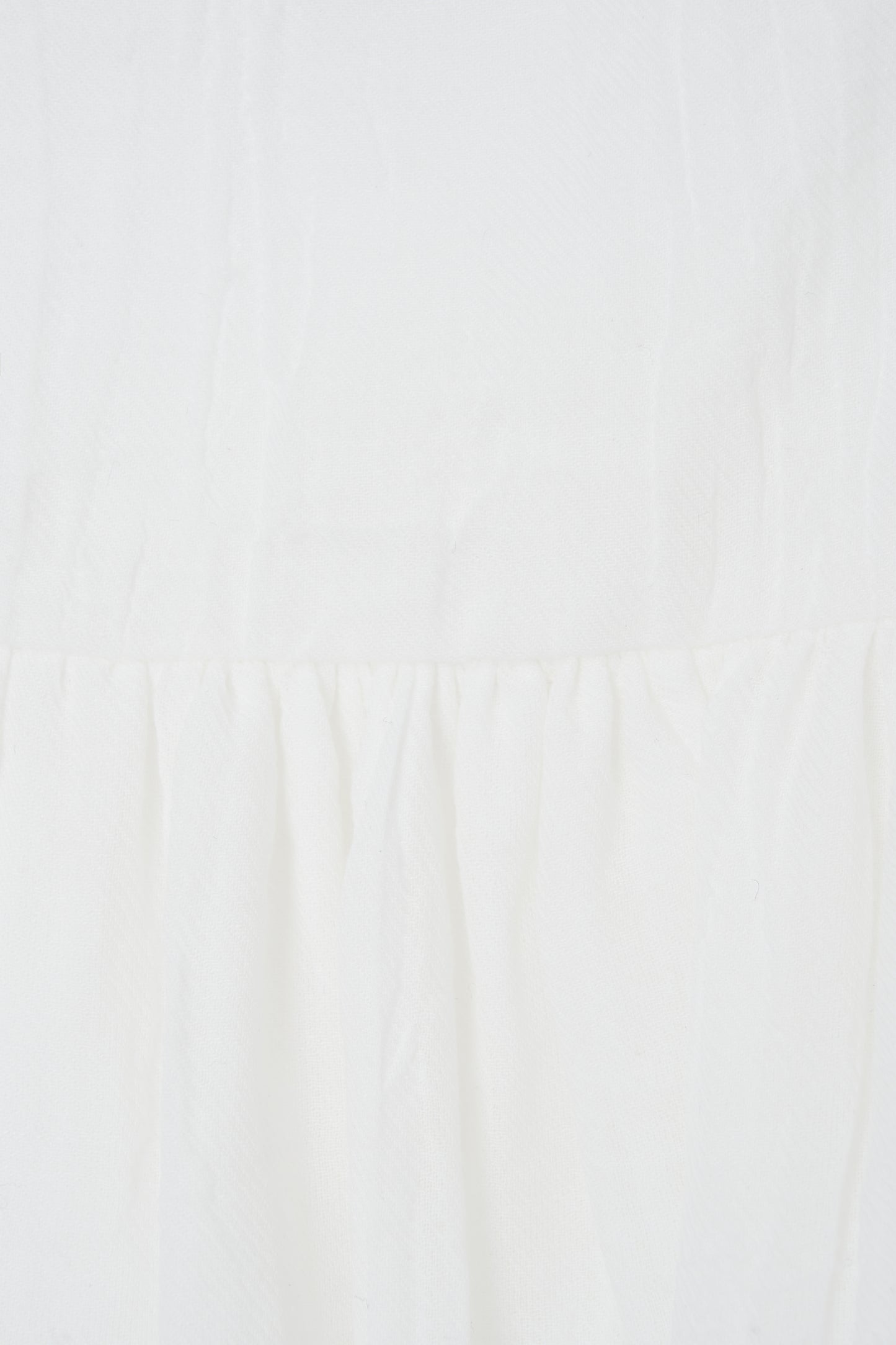 순백색의 화이트 컬러로 깨끗하고 청순한 느낌을 주며 뒷면의 백 스모킹 디테일이 돋보입니다. 신축성 있는 스모킹 디자인 덕분에 자연스럽게 몸에 맞춰져 여성스러운 실루엣을 강조하고 편안하면서도 슬림한 라인을 만들어 줍니다. 자연스럽게 퍼지는 A라인 실루엣으로 우아하면서도 활동적인 느낌을 더해줍니다.