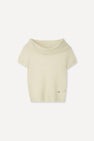 어깨선을 따라 흐르는 우아한 실루엣의 Off-Shoulder Short Sleeved Knit입니다.