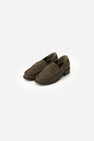모던하게 재해석한 페니 로퍼 디자인에 고급 천연 소가죽 스웨이드의 깊이 있는 텍스처의 카키, 올리브 컬러와 광택이 있는 블랙 컬러는 세련된 무드를 완성합니다. 부드러운 촉감의 스웨이드는 자연스러운 쉐이딩과 함께 시간이 지날수록 발에 맞게 길들여져 편안함을 더합니다. 전면의 페니 슬롯과 힐 컵 HOWUS 로고 자수로 단정한 클래식 포인트를 담았습니다. 2.5cm 스택드 우드톤 힐은 안정감 있는 착화감을 제공하고 밑창의 HW 시그니처 골드 메탈 장식과 러버 하프 아웃솔의 논슬립 패턴으로 실용성과 완성도를 높였습니다. 부드러운 소가죽 내피는 장시간 착용에도 쾌적함을 유지하며 간결한 라운드 토 실루엣으로 포멀과 캐주얼 스타일 모두에 자연스럽게 어우러집니다.