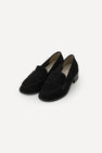 전통적인 페니 로퍼 디자인을 호와스만의 감성을 담은 스타일로 심플하면서도 정재된 디테일이 돋보이는 아이템입니다. 발등 부분에 위치한 페니 스트랩 디테일은 클래식한 무드를 더하며 스웨이드 소재 특유의 깊이 있는 텍스처와 만나 고급스러운 분위기를 연출합니다. 라운드 토 형태로 발 앞부분을 여유롭게 감싸주어 편안한 착용감을 제공하며 발바닥과 닿는 풋베드는 부드러운 쿠셔닝으로 장시간 착화에도 피로감을 덜어줍니다. 약간의 굽이 있는 로우 힐 디자인은 안정적이면서도 자연스러운 키 높이 효과를 제공합니다.